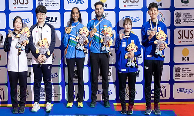 இந்நிலையில், 10 மீட்டர் ஏர் ரைபிள் பிரிவில் கலப்பு குழு போட்டி ஒன்றில், இந்தியாவின் இளவேனில் வாலறிவன் மற்றும் அர்ஜுன் பபுதா இணை தொடக்கம் முதல் வலுவாக செயல்பட்டது.