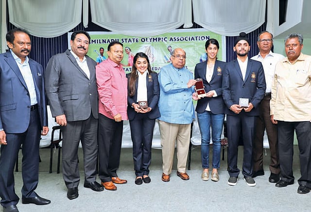 இந்த விழாவில் தமிழ்நாடு ஒலிம்பிக் சங்க பொதுச் செயலாளர் பெர்னாண்டோ, துணைத்தலைவர்கள் ஐசரி கே.கணேஷ், எஸ்.வாசுதேவன், எம்.ராமசுப்பிரமணி, டி.வி.சீத்தாராமராவ், தமிழ்நாடு கைப்பந்து சங்க பொதுச்செயலாளர் ஏ.கே.சித்திரைபாண்டியன், தமிழ்நாடு கபடி சங்க பொதுச்செயலாளர் ஷபியுல்லா, தமிழ்நாடு ஆக்கி அமைப்பின் தலைவர் சேகர் மனோகர், செயலாளர் ரேணுகா லட்சுமி, தமிழ்நாடு ஜிம்னாஸ்டிக்ஸ் சங்க தலைவர் பிரபு உள்பட பல்வேறு சங்க நிர்வாகிகள் கலந்து கொண்டனர்.