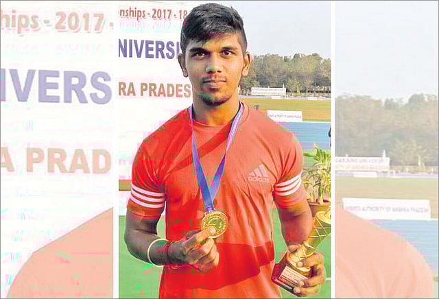 நாகர்ஜூனா பல்கலைக்கழகம் சார்பில் 78-வது அகில இந்திய பல்கலைக்கழக தடகள போட்டி ஆந்திராவில் நடந்து வருகிறது. இதில் 3-வது நாளில் நடந்த ஆண்களுக்கான நீளம் தாண்டுதலில் சென்னை பல்கலைக்கழக வீரர் பி.எஸ்.விஷ்ணு 7.68 மீட்டர் தூரம் தாண்டி தங்கப்பதக்கத்தை தனதாக்கினார். தங்கப்பதக்கம் வென்ற விஷ்ணு சென்னை பிராட்வேயில் உள்ள செயின்ட் ஜோசப்ஸ் ஸ்போர்ட்ஸ் அகாடமியில் தலைமை பயிற்சியாளரும், சுங்க இலாகா சூப்பிரண்டுமான பி.நாகராஜனிடம் பயிற்சி பெற்றவர் ஆவார்.