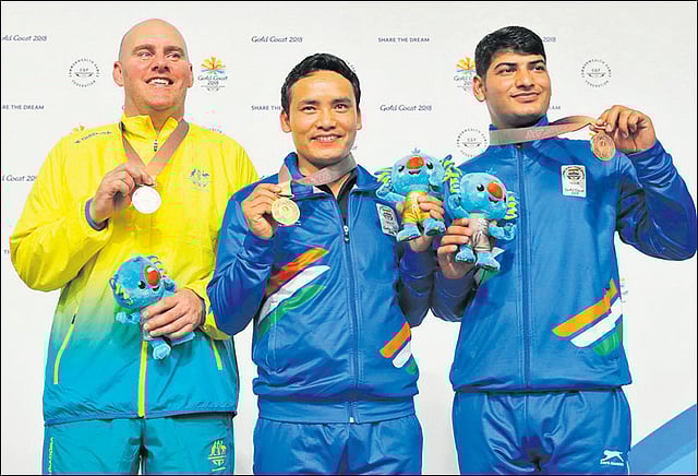 இந்த போட்டியின் 5-வது நாளான நேற்று நடந்த துப்பாக்கி சுடுதலில் ஆண்களுக்கான 10 மீட்டர் ஏர்பிஸ்டல் போட்டியில் இந்திய வீரர் ஜிதுராய் 235.1 புள்ளிகள் குவித்து தங்கப்பதக்கத்தை தனதாக்கினார். அத்துடன் அவர் காமன்வெல்த் விளையாட்டு போட்டி சாதனையையும் படைத்தார். காமன்வெல்த் விளையாட்டு துப்பாக்கி சுடுதலில் இந்தியா வென்ற 2-வது தங்கப்பதக்கம் இதுவாகும்.