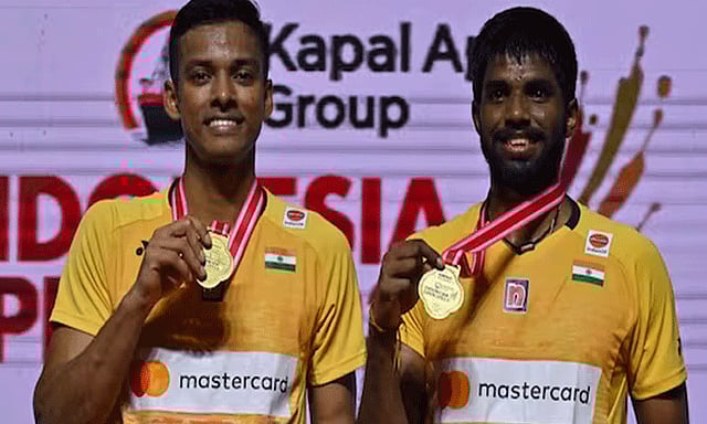 இந்தோனேசிய ஓபன் சர்வதேச பேட்மிண்டன் போட்டி ஜகர்த்தாவில் ஒரு வாரமாக நடந்து வந்தது. இதில் நேற்று நடந்த ஆண்கள் இரட்டையர் இறுதி ஆட்டத்தில் இந்தியாவின் சாத்விக் சாய்ராஜ் ரங்கிரெட்டி- சிராக் ஷெட்டி ஜோடி, உலக சாம்பியனான மலேசியாவின் ஆரோன் சியா- சோ வூய் யிக் இணையை எதிர்கொண்டது. பலம் வாய்ந்த மலேசிய ஜோடிக்கு 43 நிமிடங்களில் அதிர்ச்சி அளித்த சாய்ராஜ்- சிராக் கூட்டணி 21-17, 21-18 என்ற நேர் செட்டில் வெற்றி பெற்று சாம்பியன் கோப்பையை கைப்பற்றி வரலாறு படைத்தது.