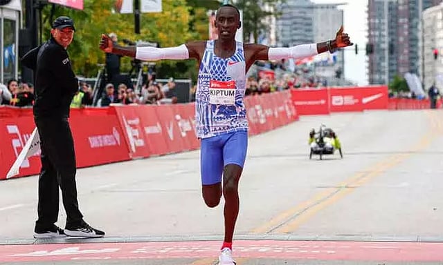 அமெரிக்காவின் சிகாகோ மாகாணத்தில் நடைபெற்ற மாரத்தான் ஓட்டப்பந்தயத்தில் கென்யாவைச் சேர்ந்த வீரர் கெல்வின் கிப்டம் புதிய உலக சாதனையை படைத்துள்ளார். மொத்தம் 35 கி.மீ. கொண்ட இந்த மாரத்தான் ஓட்டத்தில், பந்தய தூரத்தை 2 மணி நேரம் 35 வினாடிகளில் கடந்து கெல்வின் கிப்டம் முதலிடம் பிடித்தார். இதன் மூலம் மற்றொரு கென்ய வீரர் எலியுட் கிப்சோஜின் சாதனையை கெல்வின் முறியடித்துள்ளார்.