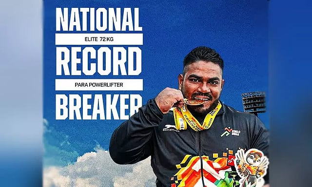 இதே போல் பளுதூக்குதல் விளையாட்டில் ஆண்கள் எலைட் (72 கிலோ) பிரிவில் பீகாரை சேர்ந்த ஜாண்டு குமார் 206 கிலோ தூக்கி தேசிய சாதனையை படைத்தார்.