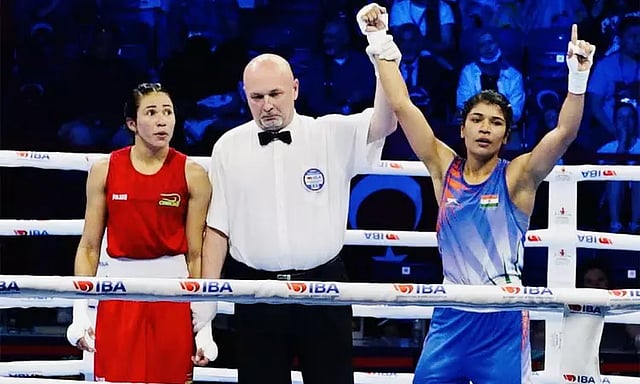 இதில் நேற்று நடந்த பெண்களுக்கான 52 கிலோ உடல் எடைப்பிரிவின் அரைஇறுதியில் சிறப்பான தாக்குதல் ஆட்டத்தை வெளிப்படுத்திய இந்திய வீராங்கனை நிகத் ஸரீன் 5-0 என்ற கணக்கில் பிரேசிலின் கரோலின் டி அல்மிடாவை வீழ்த்தி இறுதிப் போட்டிக்கு முன்னேறினார்.