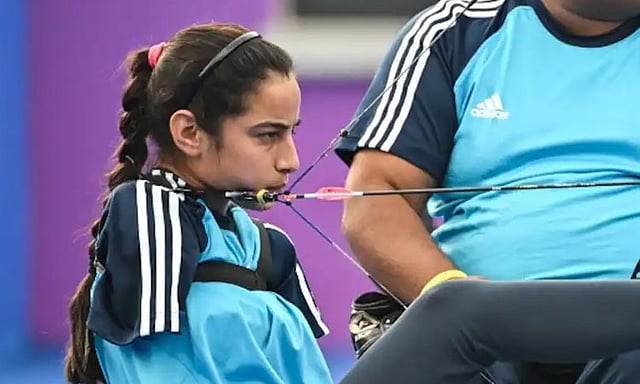 இரவு 8:59 மணி - பாரா வில்வித்தை - மகளிர் தனிப்பட்ட 1/8 எலிமினேஷன் - ஷீத்தல் தேவி - மரியானா ஜூனிகா (சீனா)