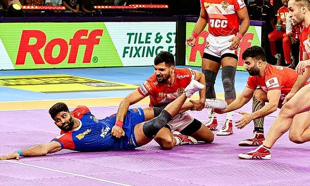 10-வது புரோ கபடி லீக் போட்டி கடந்த டிசம்பர் 2-ந் தேதி ஆமதாபாத்தில் தொடங்கியது. 12 அணிகள் பங்கேற்ற இந்த போட்டியின் லீக் ஆட்டங்கள் கடந்த 21-ந் தேதியுடன் நிறைவு பெற்றன. லீக் ஆட்டங்களின் முடிவில் புனேரி பால்டன் (96 புள்ளிகள்), ஜெய்ப்பூர் பிங்க் பாந்தர்ஸ் (92), தபாங் டெல்லி (79), குஜராத் ஜெயன்ட்ஸ் (70), அரியானா ஸ்டீலர்ஸ் (70), பாட்னா பைரேட்ஸ் (69) ஆகிய அணிகள் முறையே முதல் 6 இடங்களை பிடித்து பிளே ஆப் சுற்றுக்கு தகுதி பெற்றன.