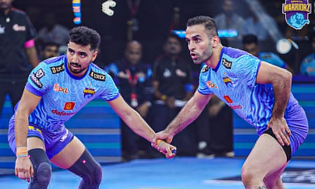 11-வது புரோ கபடி லீக் போட்டி ஐதராபாத்தில் நடந்து வருகிறது. இதில் பங்கேற்றுள்ள 12 அணிகள் தங்களுக்குள் தலா 2 முறை மோத வேண்டும். லீக் சுற்று முடிவில் முதல் 6 இடங்களை பிடிக்கும் அணிகள் 'பிளே-ஆப்' சுற்றுக்கு தகுதி பெறும்.