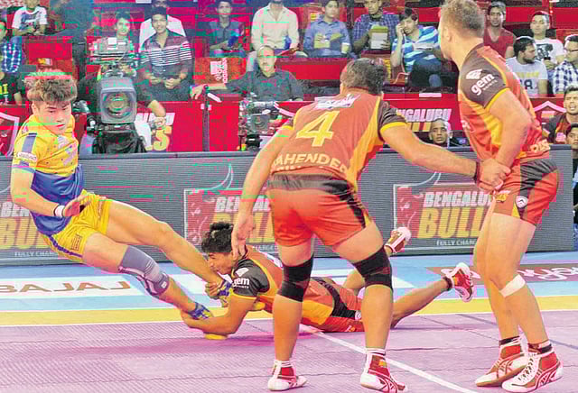 புரோ கபடி லீக்கில் பெங்களூருக்கு எதிரான நேற்றைய ஆட்டத்தில் தமிழ் தலைவாஸ் அணி மயிரிழையில் தோல்வியை தழுவியது.