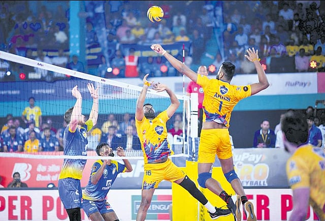 6 அணிகள் இடையிலான முதலாவது புரோ கைப்பந்து லீக் போட்டி கொச்சியில் நடந்து வருகிறது. இதில் நேற்று இரவு நடந்த 10-வது லீக் ஆட்டத்தில் சென்னை ஸ்பார்ட்டன்ஸ்-கொச்சி புளூ ஸ்பைக்கர்ஸ் அணிகள் மோதின. விறுவிறுப்பான இந்த ஆட்டத்தில் சென்னை அணி முதல் 2 செட்களை 15-12, 15-10 என்ற கணக்கில் தன்வசப்படுத்தியது. பின்னர் சரிவில் இருந்து மீண்டு வந்து சிறப்பாக செயல்பட்ட கொச்சி அணி அடுத்த 3 செட்களையும் 15-11, 15-13, 15-10 என்ற கணக்கில் சொந்தமாக்கி வெற்றியை தனதாக்கியது. 5-வது ஆட்டத்தில் ஆடிய கொச்சி அணி பெற்ற 4-வது வெற்றி இதுவாகும். 3-வது ஆட்டத்தில் ஆடிய சென்னை அணி சந்தித்த 2-வது தோல்வி இது. இன்று (செவ்வாய்க்கிழமை) இரவு 7 மணிக்கு நடைபெறும் 11-வது லீக் ஆட்டத்தில் யு மும்பா வாலி (மும்பை)-ஐதராபாத் பிளாக்ஹாக்ஸ் அணிகள் சந்திக்கின்றன. இந்த போட்டியை சோனி சிக்ஸ், சோனி டென் 3 சேனல்கள் நேரடியாக ஒளிபரப்பு செய்கின்றன.