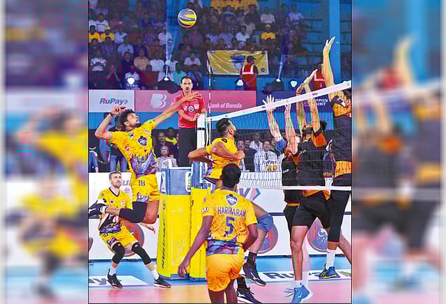 இன்று நடைபெறும் 7-வது லீக் ஆட்டத்தில் கொச்சி புளூ ஸ்பைக்கர்ஸ்-ஐதராபாத் பிளாக்ஹாக்ஸ் அணிகள் சந்திக்கின்றன. இரவு 7 மணிக்கு தொடங்கும் இந்த போட்டியை சோனி சிக்ஸ், சோனி டென்3 சேனல்கள் நேரடியாக ஒளிபரப்பு செய்கின்றன.