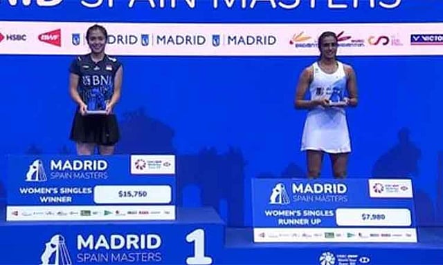 ஸ்பெயின் மாஸ்டர்ஸ் சர்வதேச பேட்மிண்டன் போட்டி மாட்ரிட் நகரில் நடைபெற்றது. இதில் நேற்று நடந்த பெண்கள் ஒற்றையர் பிரிவு அரைஇறுதி ஆட்டம் ஒன்றில் ஒலிம்பிக் போட்டியில் 2 முறை பதக்கம் வென்ற இந்திய வீராங்கனை பி.வி.சிந்து, சிங்கப்பூரை சேர்ந்த யோ ஜியா மின்னை சந்தித்தார்.