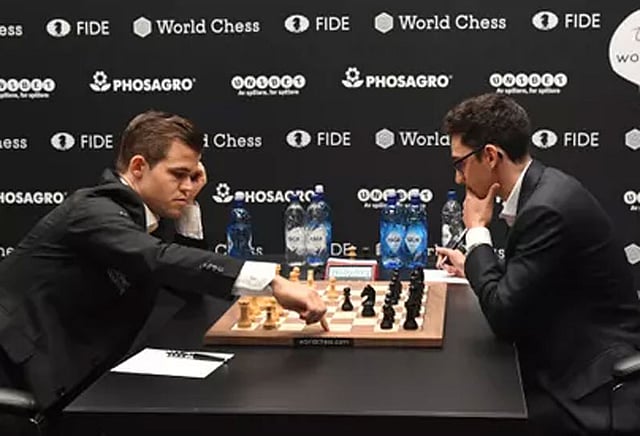 நடப்பு சாம்பியன் மாக்னஸ் கார்ல்சென் (நார்வே), பாபியானோ காருனா (அமெரிக்கா) இடையிலான உலக செஸ் சாம்பியன்ஷிப் போட்டி லண்டனில் நடந்து வருகிறது. இதில் 12 சுற்று முடிவில் அதிக புள்ளிகள் எடுக்கும் வீரருக்கு மகுடம் கிட்டும்.
