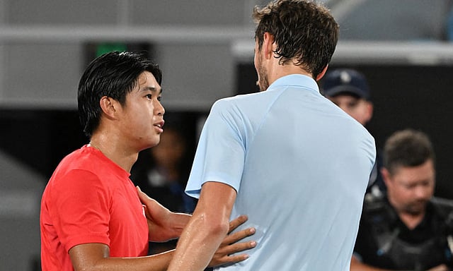 'கிராண்ட்ஸ்லாம்' போட்டிகளில் ஒன்றான ஆஸ்திரேலிய ஓபன் டென்னிஸ் தொடர் மெல்போர்னில் நடந்து வருகிறது. இதில் ஆண்கள் ஒற்றையர் பிரிவில் நேற்று நடைபெற்ற 2-வது சுற்று ஆட்டம் ஒன்றில் முன்னணி வீரரான ரஷியாவின் மெட்வதேவ், அமெரிக்காவின் லியானெர் டியன் உடன் மோதினார்.