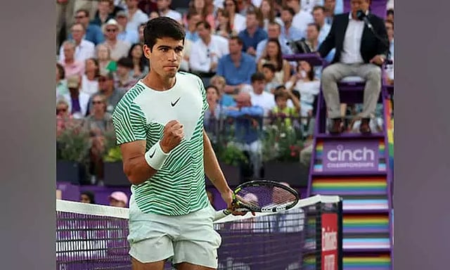 லண்டனில் நடந்த குயின்ஸ் கிளப் டென்னிசின் இறுதி சுற்றில் 2-ம் நிலை வீரர் கார்லஸ் அல்காரஸ் (ஸ்பெயின்) 6-4, 6-4 என்ற நேர் செட்டில் அலெக்ஸ் டி மினாவை (ஆஸ்திரேலியா) வீழ்த்தி மகுடம் சூடினார். புல்தரை போட்டியில் அவரது முதல் பட்டமாக இது அமைந்தது. இந்த வெற்றியின் மூலம் 20 வயதான அல்காரஸ் மீண்டும் முதலிடத்துக்கு முன்னேறுகிறார். இன்று வெளியாகும் புதிய தரவரிசை பட்டியலில் செர்பியாவின் நோவக் ஜோகோவிச்சை பின்னுக்கு தள்ளிவிட்டு 'நம்பர் ஒன்' ஆகிறார்.