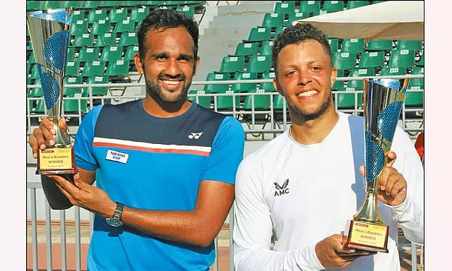 சென்னை ஓபன் ஏ.டி.பி.சேலஞ்சர் டென்னிஸ் சாம்பியன்ஷிப் போட்டி சென்னை நுங்கம்பாக்கத்தில் உள்ள எஸ்.டி.ஏ.டி. ஸ்டேடியத்தில் நடந்து வருகிறது. இதில் நேற்று நடந்த இரட்டையர் பிரிவு இறுதிப்போட்டியில் அர்ஜூன் கதே (இந்தியா)-கிளார்க் (இங்கிலாந்து) ஜோடி 6-0, 6-4 என்ற நேர்செட்டில் செபாஸ்டியன் ஆப்னெர் (ஆஸ்திரியா)-நினோ செர்டாய்சிச் (குரோஷியா) இணையை தோற்கடித்து சாம்பியன் பட்டத்தை கைப்பற்றியது.