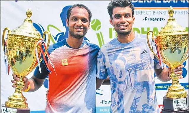 கர்நாடக மாநிலம் தார்வாத் நகரில் ஐ.டி.எப். டென்னிஸ் போட்டி நடந்து வந்தது. இதில் நேற்று நடந்த ஒற்றையர் இறுதி ஆட்டத்தில் இந்திய வீரர் ராம்குமார் 7-6 (7-5), 7-6 (8-6) என்ற நேர் செட்டில் சக நாட்டவர் திக்விஜய் பிரதாப் சிங்கை தோற்கடித்து சாம்பியன் கோப்பையை தட்டிச் சென்றார்.