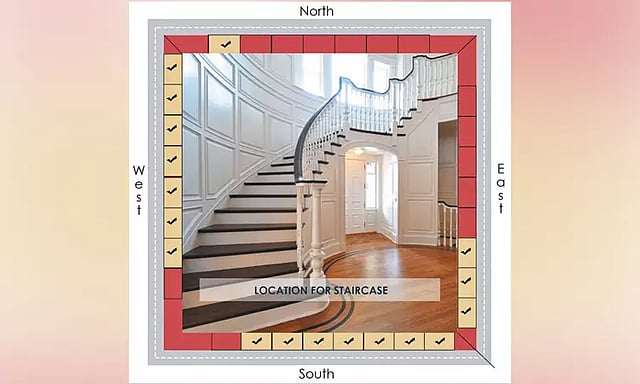 வீட்டின் தென்கிழக்கு பகுதியில் படிக்கட்டுகள் அமையும் என்றால் கிழக்கு பார்த்தவாறு இருக்க வேண்டும். தென்மேற்கில் அமைகிறது என்றால் மேற்கை பார்த்தவாறு அமைய வேண்டும். வடமேற்கில் அமைந்தால் வடக்கு திசை பார்த்தவாறு அமைய வேண்டும். வடகிழக்கில் மாடிப்படி அமைவதை தவிர்க்கலாம்.