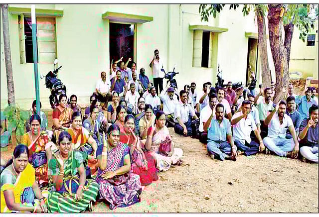 இந்த போராட்டத்துக்கு மாவட்ட தலைவர் பழனிராஜ் தலைமை தாங்கி பேசினார். மாவட்ட செயலாளர் கிருஷ்ணசாமி முன்னிலை வகித்து பேசினார். மாவட்ட பொருளாளர் ஜெகநாதன் மற்றும் 100-க்கும் மேற்பட்ட ஆசிரியர், ஆசிரியைகள் கலந்து கொண்டனர்.