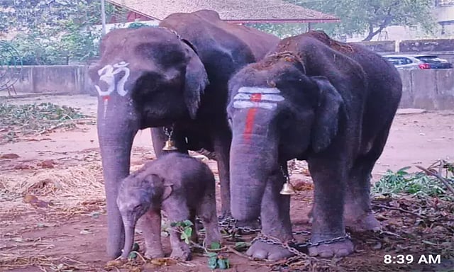 இந்தநிலையில், நேற்று முன்தினம் மாலை யானைகளுக்கு நடைபயிற்சி அளிக்கப்பட்டது பின்னர் சிவமொக்கா கோட்டை பகுதியில் உள்ள வாசவி திடலில் யானைகள் தங்க வைக்கப்பட்டன. இந்தநிலையில், இரவு 10 மணியவில் நேத்ராவதி என்ற யானை குட்டி ஈன்றது. இதுகுறித்து பாகன்கள் வனத்துறை அதிகாரி பிரசன்ன கிருஷ்ணா பட்கருக்கு தகவல் தெரிவித்தனர்.