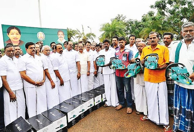 தஞ்சை மாவட்ட கலெக்டர் அலுவலக வளாகத்தில் கஜா புயலால் சேதமடைந்த மரங்களை போர்க்கால அடிப்படையில் அகற்றுவதற்காக சேலம் தமிழ்நாடு மேக்னசைட் நிறுவனம் சார்பில் வழங்கப்பட்ட 300 மரம் அறுக்கும் எந்திரங்கள் வழங்கும் நிகழ்ச்சி நடைபெற்றது. இந்த எந்திரங்களை பள்ளிக்கல்வித்துறை அமைச்சர் கே.ஏ.செங்கோட்டையன், விவசாயிகள் உள்ளிட்டவர்களுக்கு வழங்கி பேசினார். அப்போது அவர் கூறியதாவது:-