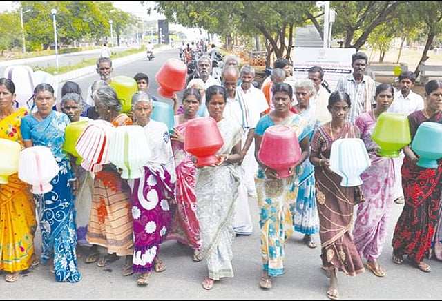 இது குறித்து பொதுமக்கள் கூறுகையில், எங்களது 2 கிராமங்களிலும் கடந்த 6 மாதங்களுக்கு மேலாக குடிநீர் வசதி இல்லை. காவிரி குடிநீர் வினியோகம் கிடையாது. ஆழ்குழாய் கிணறு மூலம் குடிநீர் வினியோகிக்கப்பட்டு வந்தது. அதிலும் மின் மோட்டார் பழுதால் குடிநீர் வரவில்லை. இது தொடர்பாக அதிகாரிகளிடம் பல முறை மனு கொடுத்தும் எந்தவித பலனும் இல்லை. குடிநீர் தேவைக்காக அருகில் உள்ள கிராமத்தில் விவசாய தோட்டத்தில் தண்ணீர் பிடித்து வந்தோம். தற்போது அங்கும் தண்ணீர் இல்லை. எனவே குடிநீர் வசதி ஏற்படுத்தி தர நடவடிக்கை எடுக்க வேண்டும் என மனுவில் தெரிவித்துள்ளோம் என்றனர். மனுவை பெற்ற கலெக்டர் கோவிந்தராஜ் நடவடிக்கை எடுப்பதாக தெரிவித்தார். குடிநீர் வசதி கேட்டு காலி குடங்களுடன் மனு கொடுக்க கலெக்டர் அலுவலகம் வந்த பொதுமக்களால் பரபரப்பு ஏற்பட்டது.