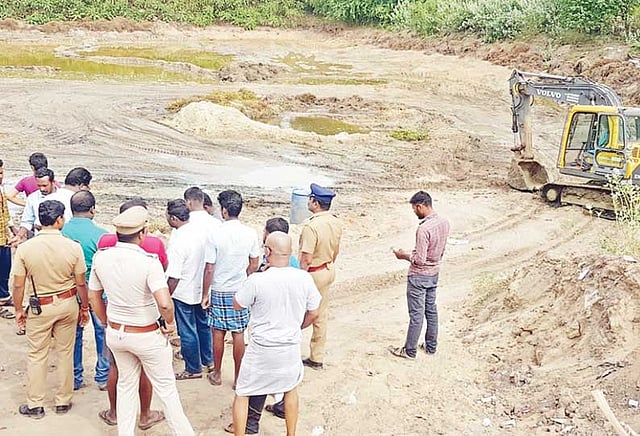 திருவாரூர் அருகே பவித்திரமாணிக்கத்தில் முத்தரப்பு குளம் உள்ளது. இந்த குளத்தை அப்பகுதி மக்கள் பயன்படுத்தி வருகின்றனர். கடந்த 6 மாதம் முன்பு அரசு அனுமதியுடன் இந்த குளம் தூர்வாரப்பட்டது. இந்த நிலையில் கடந்த சில நாட்களுக்கு முன்பு இந்த குளத்தில் மீண்டும் மண் எடுப்பதற்கு அனுமதி பெறப்பட்டுள்ளது. இதனை தொடர்ந்து பொக்லின் எந்திரத்தின் உதவியுடன் கடந்த சில நாட்களாக டிராக்டர் மூலம் மண் எடுக்கப்பட்டு வந்தது.