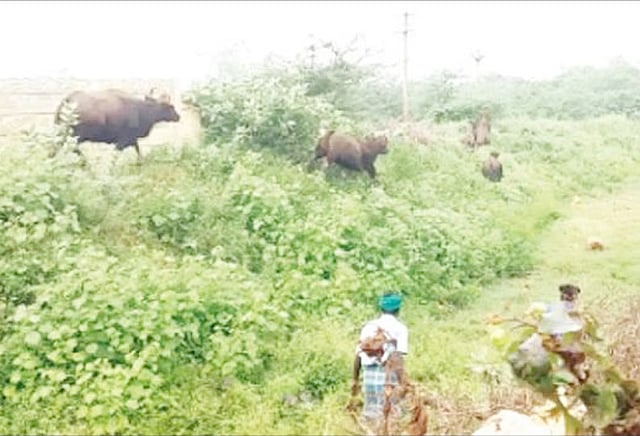 அந்த காட்டெருமைகள் மீண்டும் கிராமத்துக்குள் வந்து விடுமோ என்ற அச்சத்தில் 50-க்கும் மேற்பட்டோர் மலையடிவாரத்தில் சில மணி நேரம் காத்திருந்தனர். காட்டெருமைகள் மீண்டும் வராததை உறுதி செய்த பின்னர், அவர்கள் அங்கிருந்து கலைந்து சென்றனர்.