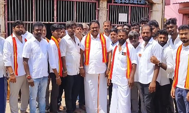 இந்த நிலையில், நெல்லை டவுன் பகுதியில் உள்ள த.வெ.க. அலுவலகத்தில் ஆர்.எஸ்.முருகன் முன்னிலையில் பா.ஜ.க., அ.ம.மு.க. உள்ளிட்ட மாற்றுக் கட்சிகளைச் சேர்ந்த நிர்வாகிகள், தொண்டர்கள் உள்ளிட்ட 50-க்கும் மேற்பட்டோர் தங்களை தமிழக வெற்றிக் கழகத்தில் இணைத்துக் கொண்டனர். த.வெ.க.வில் புதிதாக இணைந்தவர்களை வேட்பாளர் ஆர்.எஸ். முருகன் கட்சித் துண்டை அணிவித்து வரவேற்றார்.