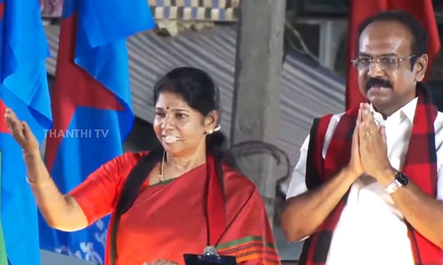 தமிழக சட்டமன்ற தேர்தல் நெருங்கி வரும் சூழலில், அரசியல் கட்சியினர் தமிழகம் முழுவதும் தீவிர தேர்தல் பிரசாரத்தில் ஈடுபட்டு வருகின்றனர். அந்த வகையில், விருதுநகர் மாவட்டம் திருச்சுழி சட்டமன்ற தொகுதியில் போட்டியிடும் தி.மு.க. வேட்பாளர் தங்கம் தென்னரசை ஆதரித்து, கனிமொழி எம்.பி. பிரசாரம் மேற்கொண்டார். அப்போது அவர் பேசியதாவது;-