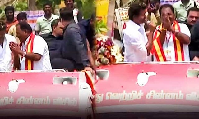 இந்தநிலையில், தவெக தலைவர் விஜய் இன்று புதுச்சேரியில் போட்டியிடும் தவெக வேட்பாளர்களை ஆதரித்து பிரசாரம் செய்தார். அப்போது புதுச்சேரி தவளகுப்பத்தில் பிரசாரத்தின்போது மணவெளி தொகுதி தவெக வேட்பாளர் ராமு என கூறுவதற்கு பதிலாக, பாஜக வேட்பாளரும், சபாநாயகருமான செல்வம் என மாற்றி கூறியதால் சிறிது நேரம் பரபரப்பு நிலவியது. பதறிப்போன வேட்பாளர், தன் பெயர் ராமு எனக் காதருகே சென்று கூறியபின் சுதாரித்த விஜய், `வேட்பாளர் ராமு' என மாற்றிக் கூறிய காட்சிகள் வைரலாகி வருகிறது.