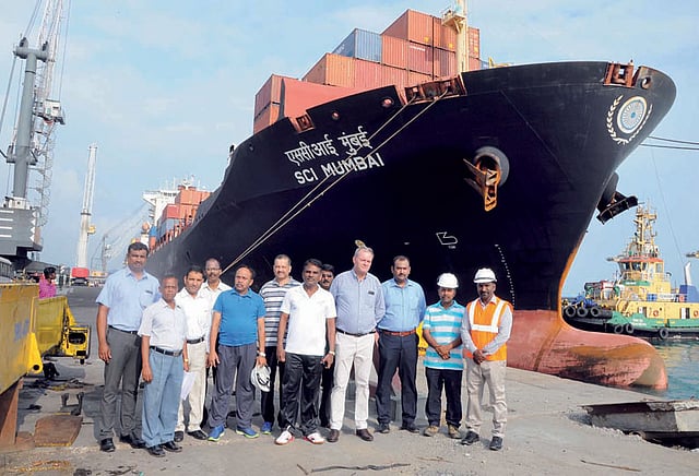 தூத்துக்குடி வ.உ.சிதம்பரனார் துறைமுகத்திற்கு நேற்று 262 மீட்டர் நீளமுள்ள எஸ்.சி.ஐ. மும்பை என்ற சரக்கு பெட்டக கப்பல் ஆந்திர மாநிலம் கிருஷ்ணபட்டணம் துறைமுகத்தில் இருந்து வந்தது. 4 ஆயிரத்து 395 சரக்கு பெட்டகங்களை எடுத்து செல்லும் வசதி கொண்ட இந்த கப்பல் தூத்துக்குடியில் சரக்குகளை இறக்கி விட்டு இன்று(வெள்ளிக்கிழமை) கொச்சி துறைமுகத்திற்கு புறப்பட்டு செல்கிறது.