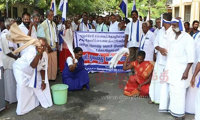 அவர்கள் தங்கள் கோரிக்கையை நிறைவேற்ற உள்ளாட்சித்துறையை வலியுறுத்தி புதுவை சட்டசபை அருகே கண்டன ஆர்ப்பாட்டத்தில் ஈடுபட்டனர். அப்போது அவர்கள் நடுரோட்டில் துணிகளை துவைத்தனர்.