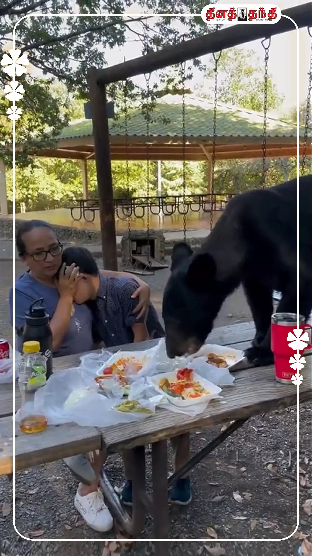 வைரல் வீடியோ; மேசை மீது ஏறி அட்டகாசம் செய்த கருப்பு கரடி