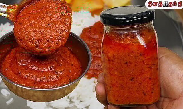 தேவையான பொருட்கள் : தக்காளி - 1 கிலோ, காய்ந்த மிளகாய் - 2, தனி மிளகாய்த் தூள் - 2 டீஸ்பூன், மஞ்சள் தூள் - 1/2 டீஸ்பூன், உப்பு - தேவையான அளவு, நல்லெண்ணெய் - 1 குழிக்கரண்டி, பெருங்காயம் - 1/2 டீஸ்பூன், வெந்தயம் - அரை ஸ்பூன், கறிவேப்பிலை - 1 கொத்து.