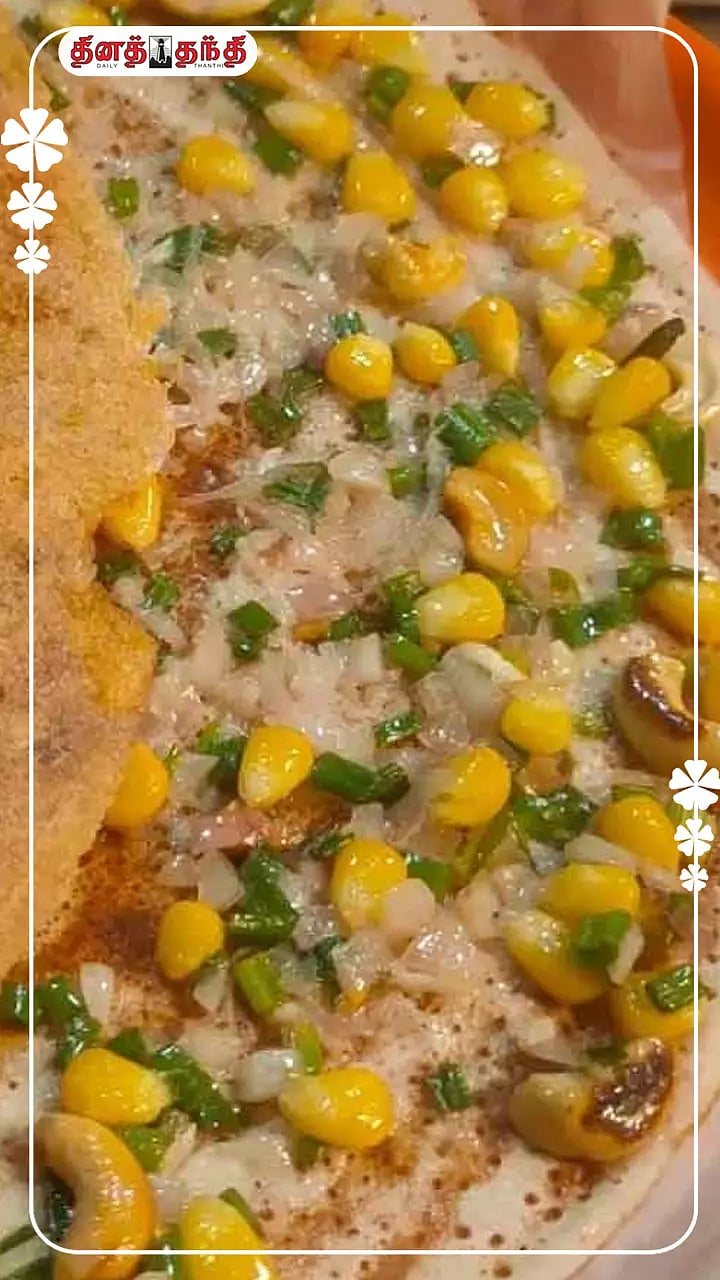 தேவையான பொருட்கள்: தோசை மாவு, ஸ்வீட் கார்ன், குடைமிளகாய், வெண்ணெய், மிளகுப் பொடி, சீஸ், புதினா சட்னி அல்லது தக்காளி சாஸ் ஆகியவை..செய்முறை: குடைமிளகாயை பொடியாக நறுக்கிகொள்ளவும்..தோசை கல்லை அடுப்பில் வைத்து சூடானதும் மாவை மெல்லிய தோசையாக ஊற்றி சுற்றி வெண்ணெய் ஊற்ற அடுப்பை மிதமான தீயில் வைக்கவும்..பின்னர் தோசை மேல் புதினா சட்னி அல்லது தக்காளி சாஸை தேய்க்கவும்..அடுத்து அதன் மேல் ஸ்வீட் கார்ன், குடைமிளகாயை மேலே தூவி கொள்ளவும்..அடுத்து அதன் மேல் மிளகு தூள், சிறிது உப்பு தூவவும். கடைசியாக தோசை மேல் சீஸை துருவி விடவும்..சீஸ் உருகியதும் எடுத்து பரிமாறவும். இப்போது சீஸ் கார்ன் கேப்சிகம் தோசை ரெடி..Explore