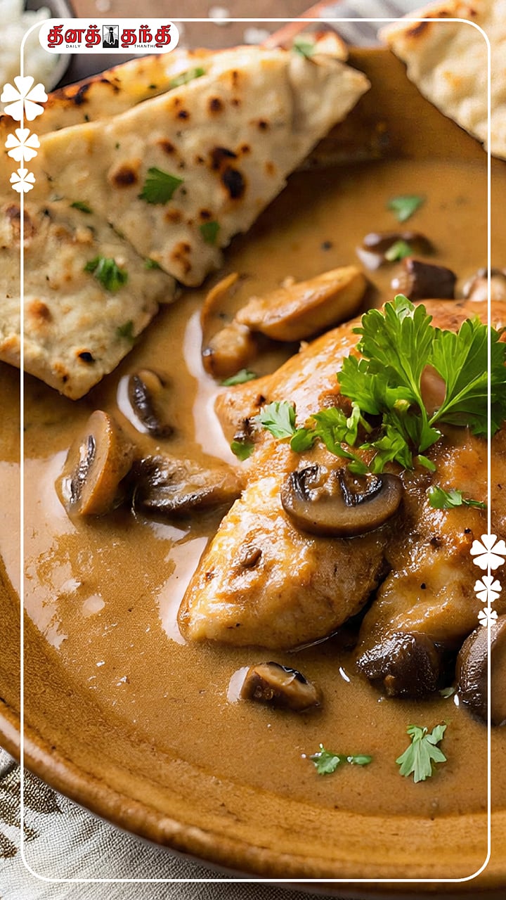 சப்பாத்திக்கு பொருத்தமான..சிக்கன் மஷ்ரூம் ரெசிபி...!