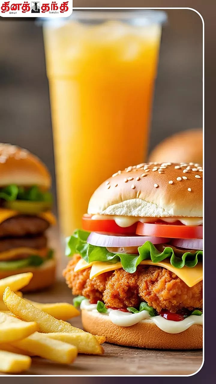 துரித உணவுகள்(Junk foods) சுவையாக இருந்தாலும், அது நம் உடலுக்கு தீங்கு விளைவிக்கின்றன..துரித உணவுகளில் அதிகளவு கலோரிகள்தான் இருக்கும். இதனால் உடல் எடை வேகமாக அதிகரிக்கும்..துரித உணவுகளில் எண்ணெய் அதிகம் சேர்க்கப்படுவதால் கொலஸ்ட்ரால் அதிகரிக்கும். இதனால் இதய நோய் மற்றும் ரத்த அழுத்தம் ஏற்படும் அபாயம் உயரும்..அதிக சர்க்கரை சேர்க்கப்பட்ட உணவுகளை சாப்பிடும் போது, அது நீரிழிவு நோய்க்கான காரணமாக அமையலாம்..தினமும் துரித உணவுகள் சாப்பிட்டால் உடல் அழற்சி ஏற்படலாம்..குறைந்த நார்ச்சத்து இருப்பதால் எளிதில் ஜீரணமாகாது. மலச்சிக்கலும் ஏற்படலாம்..தினமும் துரித உணவுகள் சாப்பிடும் போது, நோய்களை எதிர்க்கும் சக்தி குறைய வாய்ப்புள்ளது..Explore