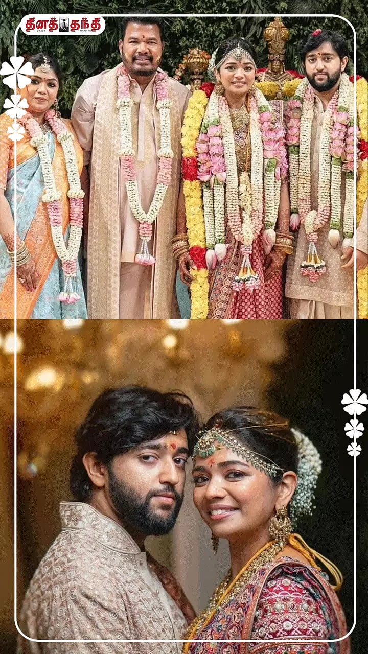 சென்னையில் ஷங்கரின் மகள் ஐஸ்வர்யா ஷங்கர் - தருண் கார்த்திகேயன் திருமணம் கோலாகலமாக நடைபெற்றது..தமிழக முதல் - அமைச்சர் மு.க.ஸ்டாலின் தனது மனைவி துர்கா ஸ்டாலினுடன் சென்று மணமக்களுக்கு வாழ்த்து தெரிவித்துள்ளார்..மேலும் திருமண விழாவில் நடிகர் ரஜினிகாந்த், கமல்ஹாசன்,சூர்யா,கார்த்தி,விக்னேஷ் சிவன் - நயன்தாரா உள்ளிட்ட பலர் நேரில் வாழ்த்தினர்.