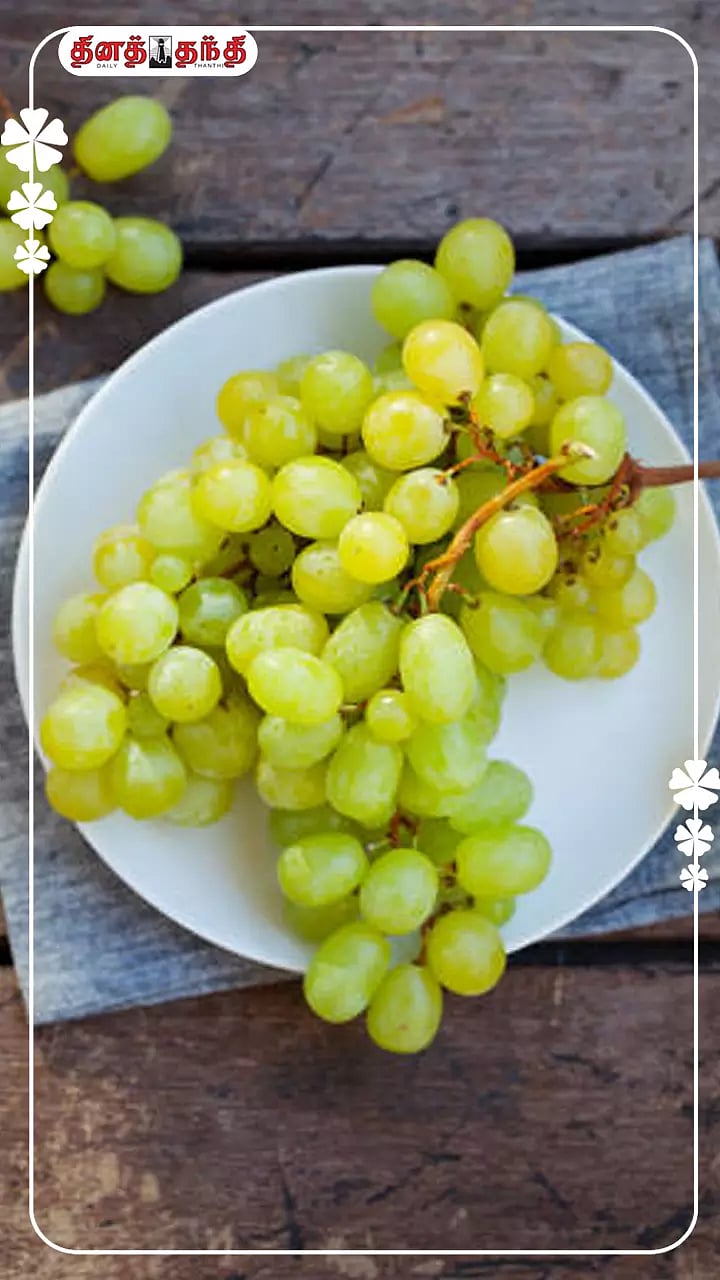 பச்சை திராட்சையில் உள்ள பொட்டாசியம் ரத்த அழுத்தத்தைக் கட்டுப்படுத்தி இதயத்தை ஆரோக்கியமாக வைத்திருக்க உதவுகிறது.