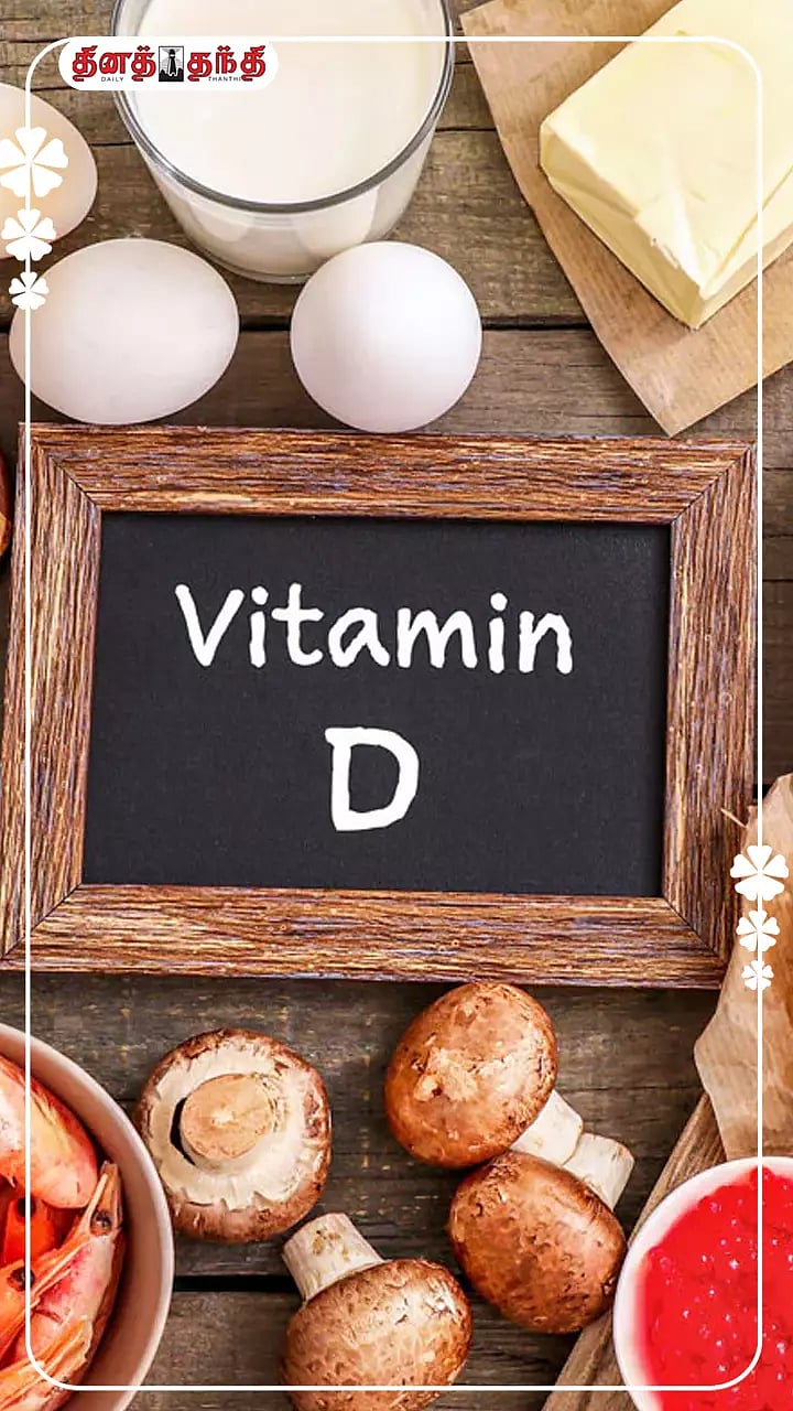 கொழுப்பு நிறைந்த மீன்கள்.முட்டையின் மஞ்சள் கரு.காளான்கள்.பால் மற்றும் தயிர்.பாதாம்.ஆரஞ்சு ஜூஸ்.சியா விதை