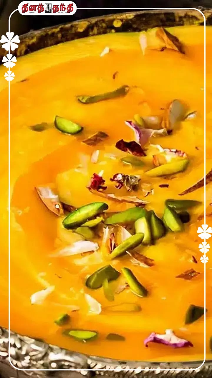இந்த சீசனில் கிடைக்கும் மாம்பழத்தை வைத்து அருமையான ரெசிபிகளை செய்யலாம். அந்த வகையில் இன்று மாம்பழ பாயாசம் செய்வது எப்படி என்று பார்க்கலாம்..தேவையான பொருட்கள் : தித்திப்பான மாம்பழக் கூழ், சர்க்கரை, பால், அரிசிக்குருணை, கேசரி பவுடர், நெய், முந்திரி, திராட்சை, கண்டென்ஸ்டு மில்க், மேங்கோ எசன்ஸ், ஏலக்காய்த்தூள் ஆகியவை..செய்முறை : முந்திரி, திராட்சையை நெய்யில் சிவக்க வறுத்து எடுக்கவும்..மீதமுள்ள நெய்யை விட்டு அரிசிக் குருணையைப் போட்டு லேசாக வறுத்து, அதில் பாலை ஊற்றி காய்ச்சவும்..அரிசி நன்றாக வெந்து, பால் சிறிது வற்றியதும், கண்டென்ஸ்டு மில்க், சர்க்கரை சேர்த்துக் கிளறவும்..பிறகு கேசரி பவுடர், ஏலக்காய்த்தூள் சேர்த்துக் கிளறி, மாம்பழக் கூழையும் சேர்க்கவும்..எல்லாம் சேர்ந்து கொதித்ததும் கீழே இறக்கி, முந்திரி - திராட்சை, மேங்கோ எஸன்ஸ் சேர்த்துப் பரிமாறவும்..இந்த மாம்பழ பாயாசத்தை பெரியவர்கள் முதல் சிறியவர்கள் வரை விரும்பி உண்ணுவார்கள்.