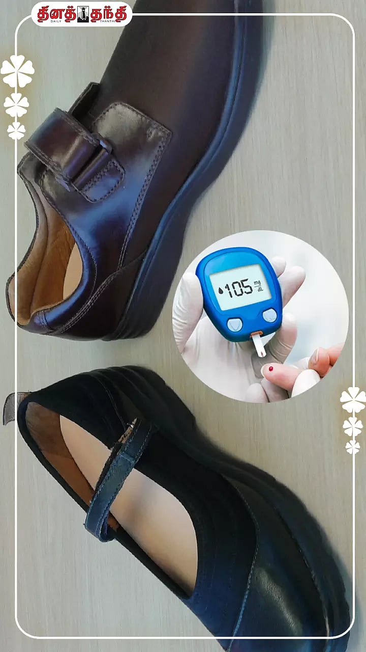 சர்க்கரை நோய் உள்ளவர்களுக்கு சரியான காலணிகளை தேர்ந்தெடுப்பதன் மூலம் காலில் ஏற்படக்கூடிய 85 சதவிகித பிரச்சனைகளை தடுக்கலாம்.