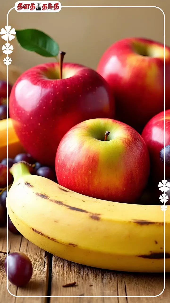 ஆப்பிள் பழம் – நோய் எதிர்ப்பு சக்தியை அதிகரிக்கும். ஜீரணத்திற்கு நல்லது..மாதுளை பழம் – ஆன்டி-ஆக்சிடன்ட் நிறைந்துள்ளதால் தொற்றுகளைத் தடுக்கும்..பேரிக்காய் பழம் – நார்ச்சத்து நிறைந்துள்ளதால் குடல் ஆரோக்கியத்தை மேம்படுத்தும்..நாவல் பழம் – சர்க்கரை அளவை கட்டுப்படுத்தும். ஜீரணத்தை மேம்படுத்தும்..செர்ரி பழம் – அழற்சியை குறைக்கும்..பிளம்ஸ் பழம் – சருமத்துக்கு நல்லது. நோய் எதிர்ப்பு சக்தியை அதிகரிக்கும்..பப்பாளி - வயிற்று கோளாறுகளைத் தடுக்கும்..குறிப்பு: மழைக்காலத்தில் தர்பூசணி, கிர்ணி பழம் மற்றும் லிச்சி போன்ற அதிக நீர்ச்சத்துள்ள பழங்களை குறைத்து சாப்பிடுவது நல்லது..Explore