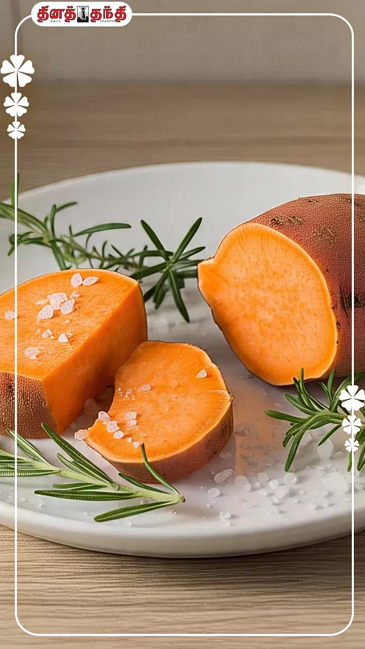பி-6 வைட்டமின் அதிகமாக இருப்பதால் செரிமான கோளாறு பிரச்சினையை சீர் செய்கிறது..மன அழுத்தத்தில் இருந்து நம்மை விடுவிக்கிறது..உடலில் தங்கியிருக்கும் தேவையற்ற நச்சுகளை வெளியேற்ற வழிவகை செய்கிறது..நோய் எதிர்ப்பு மண்டலத்தை சீராக பராமரிக்க உதவுகிறது..சிவப்பு ரத்த அணுக்களின் உற்பத்தியை அதிகரிக்க முக்கிய காரணமாக விளங்குகிறது..புற ஊதா கதிர்களின் பாதிப்பில் இருந்து சருமத்தை பாதுகாக்க உதவுகிறது..இதில் உள்ள பீட்டா கரோட்டின், கண் ஆரோக்கியத்தை மேம்படுத்தக்கூடும்..உடல் எடையைக் கட்டுப்படுத்த முயற்சித்தால் சர்க்கரை வள்ளிக்கிழங்கு சிறந்த தேர்வாகும்..Explore