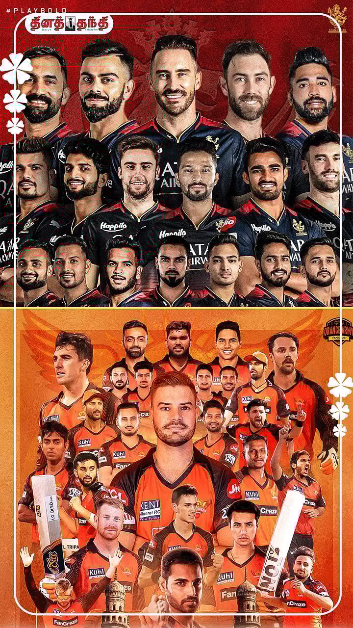 சன்ரைசர்ஸ் ஐதராபாத் 12 வெற்றிகளையும், ராயல் சேலஞ்சர்ஸ் பெங்களூரு 10 வெற்றிகளையும் பெற்றுள்ளது..சன்ரைசர்ஸ் ஐதராபாத் அணியின் அதிகபட்ச ரன்கள் 231..ராயல் சேலஞ்சர்ஸ் பெங்களூரு அணியின் அதிகபட்ச ரன்கள் 227..ராயல் சேலஞ்சர்ஸ் பெங்களூரு அணியின் குறைந்தபட்ச ரன்கள் 68..சன்ரைசர்ஸ் ஐதராபாத் அணியின் குறைந்தபட்ச ரன்கள் 125.