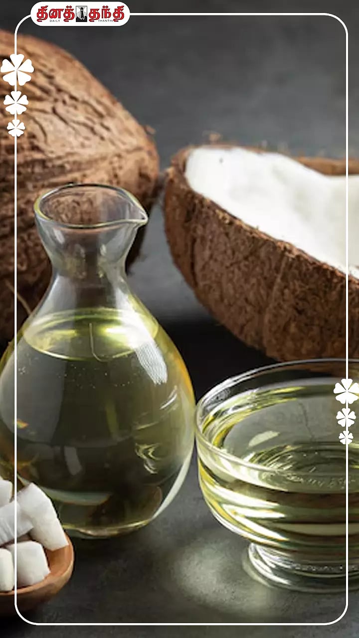 தேங்காய் எண்ணெயில் கொழுப்பு அமிலங்கள் மற்றும் வைட்டமின்கள் நிறைந்துள்ளன..பொடுகு பிரச்சினையை போக்கும் தன்மைக்கொண்டது..கூந்தலுக்கு மிருது தன்மையையும், பொலிவையும் ஏற்படுத்திக்கொடுக்கும்..முடி வளர்ச்சியையும் ஊக்குவிப்பதில் முக்கிய பங்காற்றுகிறது..இதில் உள்ள லாரிக் அமிலம், முடியை வலுப்படுத்தவும், முடி உதிர்வதை குறைக்கவும் உதவுகிறது..தேங்காய் எண்ணெய் தலைமுடியை ஆரோக்கியமாகவும், அடர்த்தியாகவும் வைக்கக்கூடும்..தேங்காய் எண்ணெய் உச்சந்தலையில் குளுர்ச்சியை ஏற்படுத்தி, உடல் உஷ்ணத்தை குறைக்கக்கூடும்..Explore