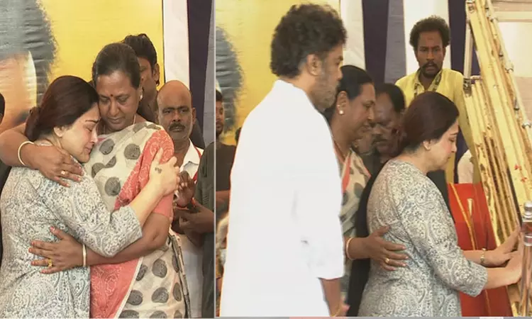 தீவுத்திடலில் வைக்கப்பட்டுள்ள தேமுதிக தலைவர் விஜயகாந்த் உடலுக்கு இயக்குநர் பாக்யராஜ், நடிகர் சாந்தனு, நடிகை குஷ்பு, இயக்குநர் சுந்தர் சி உள்ளிட்டோர் அஞ்சலி செலுத்தினர். அப்போது நடிகை குஷ்பு பிரேமலதா விஜயகாந்தை கட்டியணைத்து ஆறுதல் கூறினார்.