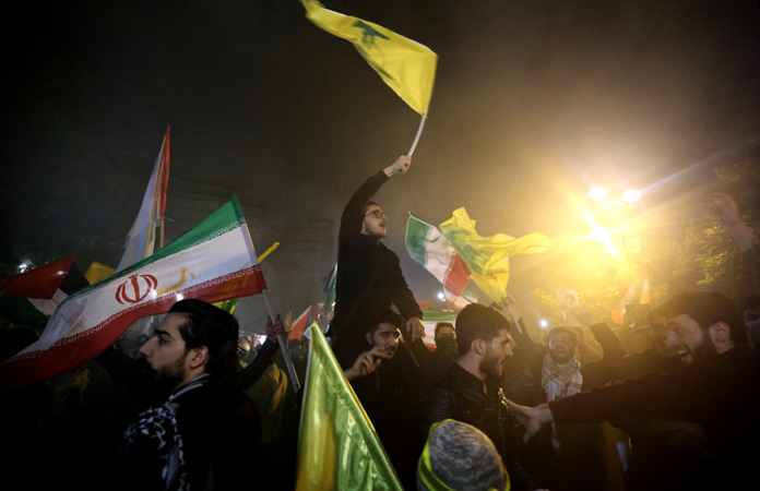 இந்நிலையில், இஸ்ரேல் மீது ஏவுகணை தாக்குதல் நடத்தப்பட்டதை ஈரான் மக்கள் கொண்டாடினர். தலைநகர் தெஹ்ரானில் உள்ள இங்கிலாந்து தூதரகம் முன் திரண்ட ஈரானியர்கள் ஈரான், ஹிஸ்புல்லா கொடிகளை ஏந்தி கொண்டாட்டத்தில் ஈடுபட்டனர்.