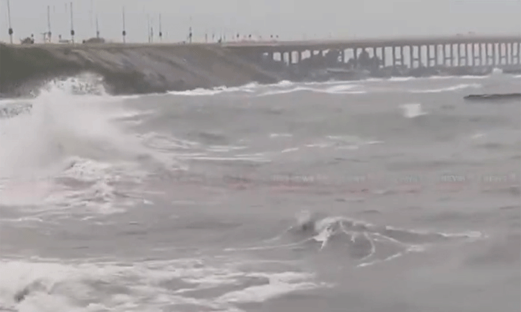 புயல் சின்னம் எதிரொலி: பாம்பனில் 3வது நாளாக கடல் சீற்றம்