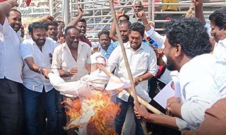 மத்திய கல்வித்துறை மந்திரி தர்மேந்திர பிரதான் பேச்சை கண்டித்து சென்னையில் பல்வேறு இடங்களில் திமுகவினர் ஆர்ப்பாட்டத்தில் ஈடுபட்டுள்ளனர். சைதாப்பேட்டை கலைஞர் பொன்விழா வளைவு அருகே தர்மேந்திர பிரதான் உருவ பொம்மையை எரித்து திமுகவினர் ஆர்ப்பாட்டத்தில் ஈடுபட்டனர்.